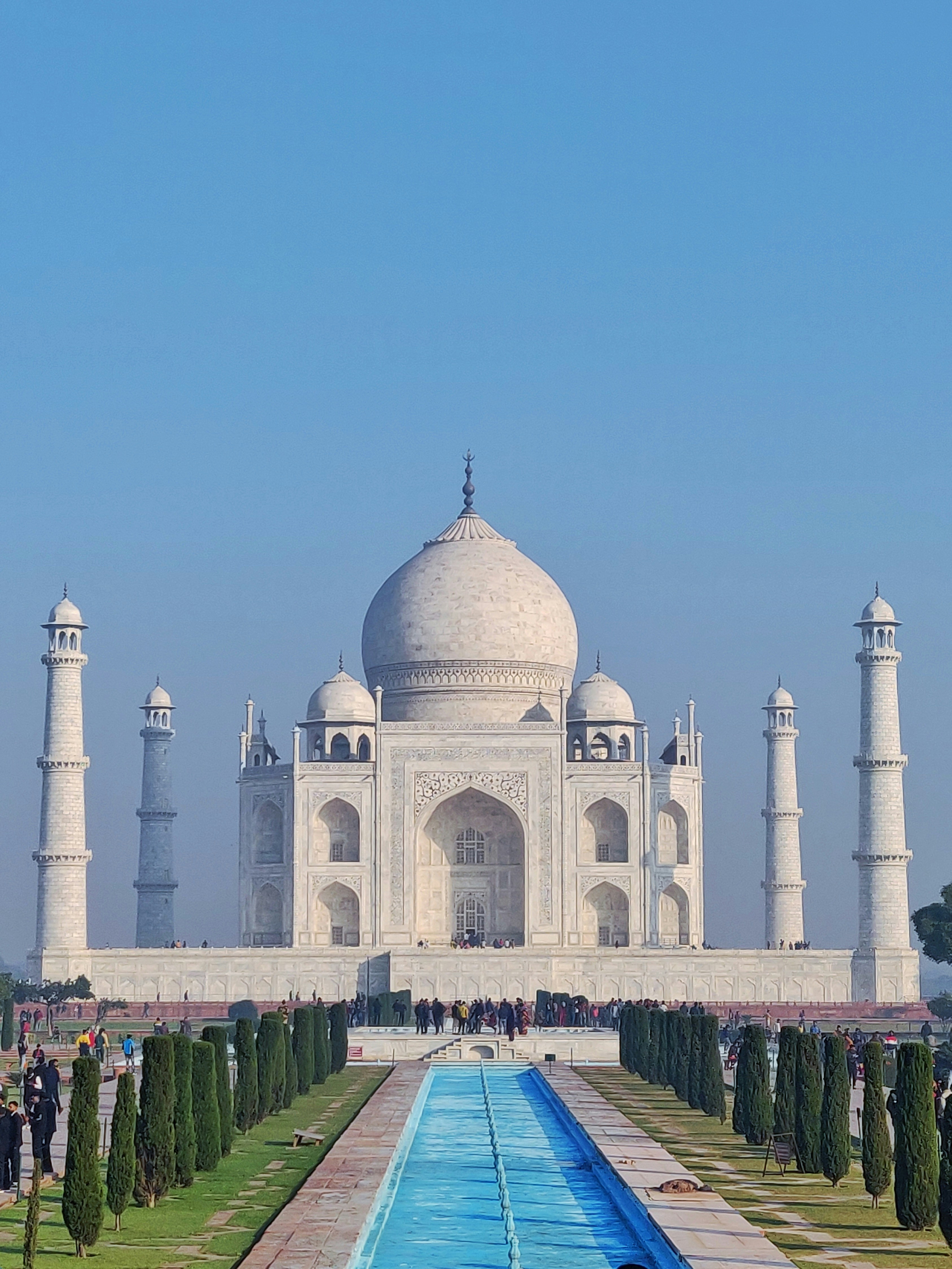 The color of the Taj Mahal seems to change according to the time of day and the entire mausoleum is spread over an area of ​​about 17 hectares.